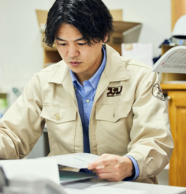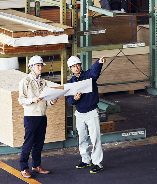 蓄積されたノウハウと新しい情報を発信します。資材商品知識を元に、1棟ごとに提案を行います。建築現場に必要な資材を積算することも基本業務です。企業の価値を表現し、体現するのが営業です。