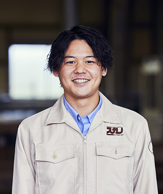 私はスガノに勤めて4年弱になります。スガノ東部安芸津工場では主に柱等の加工を行っております。スガノに勤めるまでは家に使われている木材の材種等のことはほぼ知らないことが多かったのですが、プレカット加工をするにあたり様々な木材の材種、またその木材の特徴等に少し知識を得ることができました。